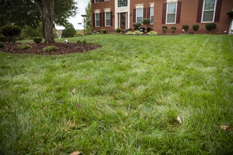 In Central and Southern Maryland, tall fescue is our desired main grass species. Tall fescue grows in clumps before it comes together to form your larger lawn. One sign that your lawn might need aeration and seeding, in addition to others like a thinning appearance and bare spots, is that it is reverting to that clumpy appearance again. Before we get to how watering after aeration and seeding is important, let’s review what these services do for a lawn.
